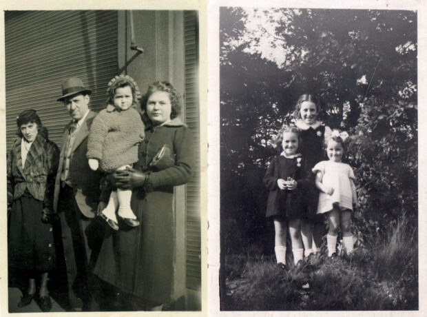 Lysora et Chava Korman, Mireille Korman est dans le bras de sa nourrice. Hayange, 1934 (Source : CERCIL_Mémorial de la Shoah\Coll. Nowodworski) — Les sœurs Korman, Henriette, Mireille et Jacqueline Korman (Source : CERCIL_Mémorial de la Shoah\Coll. Cloé Korman)