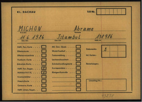 Fiche de « Abrame Michon » à Dachau.