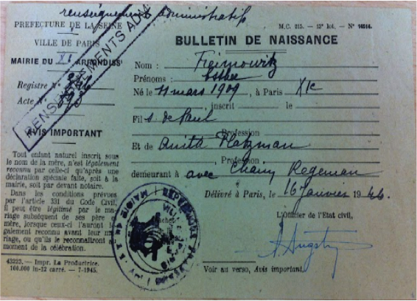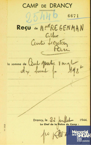 Le jeune Alain Albert REGENMAN se retrouve sans sa mère. Il a 12 ans quand la guerre se termine. Il vit alors chez son grand-père Paul FREIMOWITZ, 56, rue de la Roquette à Paris, dans le 11e arrondissement. Celui-ci écrira d’une main tremblante une attestation sur le non-retour de son « gendre » et de sa fille. Il indique la date du 22 juillet comme celle de la disparition de sa fille. Date qui figure aussi dans des documents officiels comme étant celle de son arrestation.