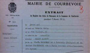 Acte de naissance d’Alain Albert REGENMAN, le fils d’Esther et Chaïm