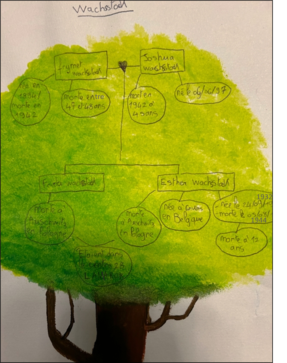 Figure 4 – Arbre généalogique d’Esther Wachsstock, réalisé par Ombline et Yara.