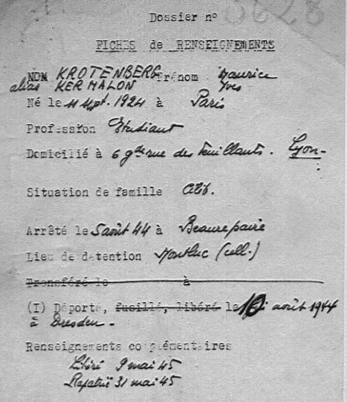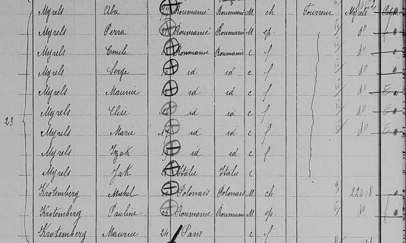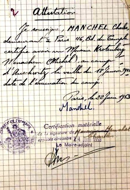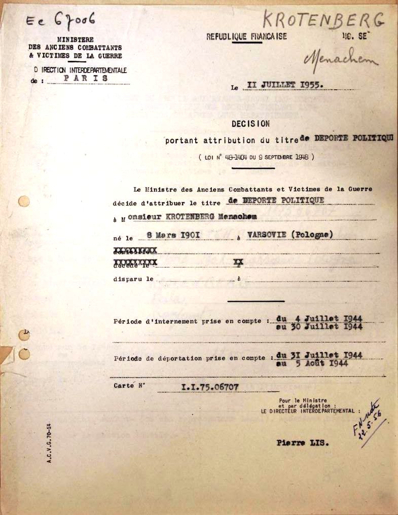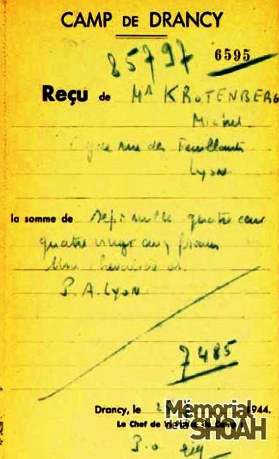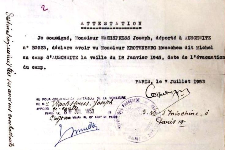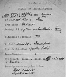 Le Mémorial de la Shoah contient d’autres dossiers de Krotenberg nés à Varsovie, mais nous n’avons pas les moyens de les rattacher entre eux.