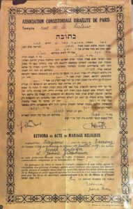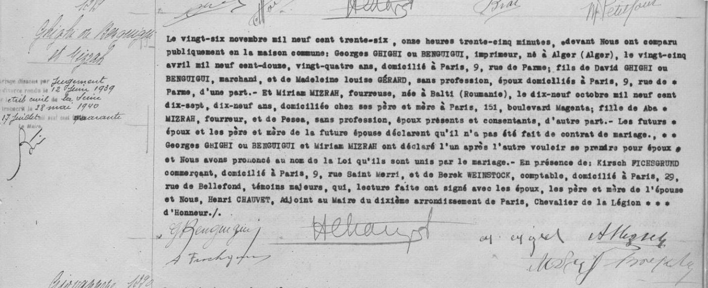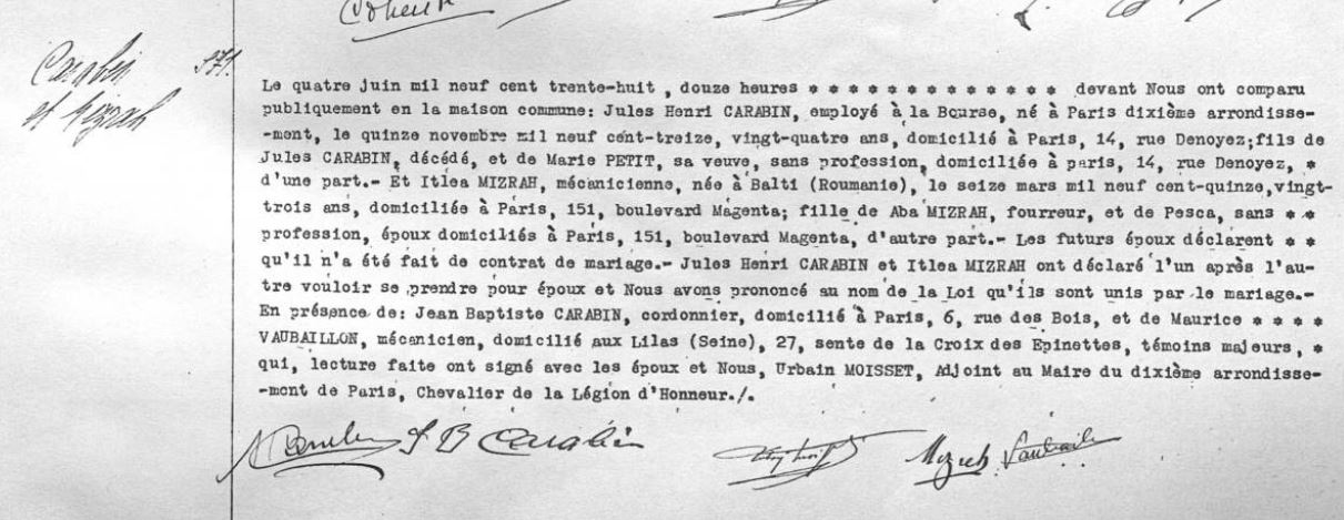 Acte de mariage Joseph Mizreh et Adèle Rosenberg – 1927 – Paris, 4e arrondissement – Etat civil