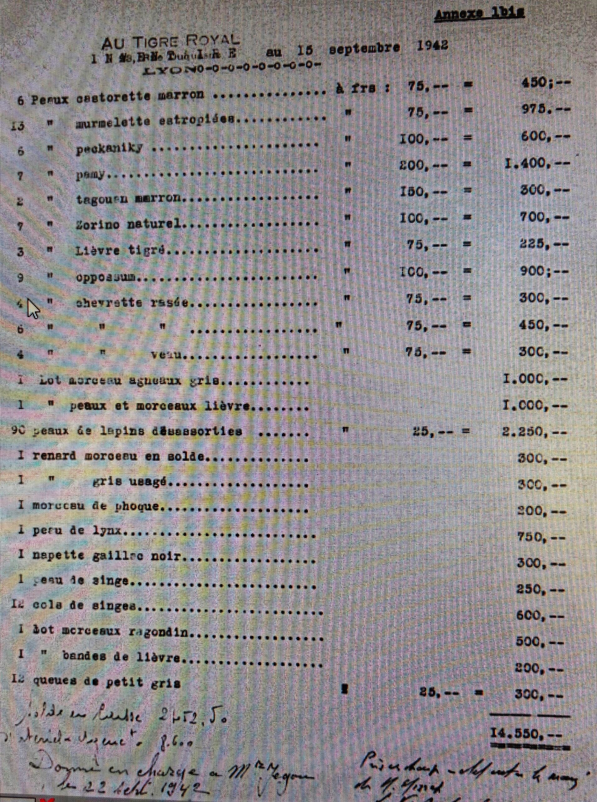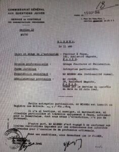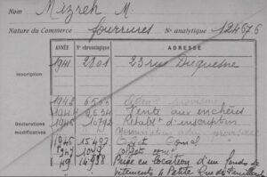 Le dossier d’aryanisation de 1942[21] nous donne plusieurs informations : le local, considéré comme une petite entreprise artisanale, se situe au 3ème étage et est constitué d’un atelier, d’une chambre et d’une cuisine d’une valeur locative de 2800 frs ; le chiffre d’affaires annuel étant estimé à 17 500 frs. Michel y est déclaré travaillant seul, de nationalité polonaise lors de l’aryanisation.