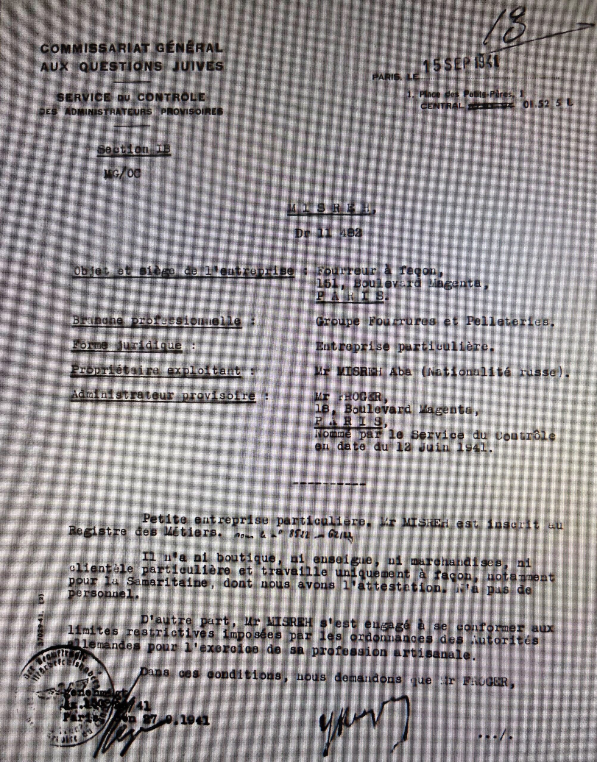 [39] Mémorial de la Shoah – AJ 33/3 497 dossier 1362.