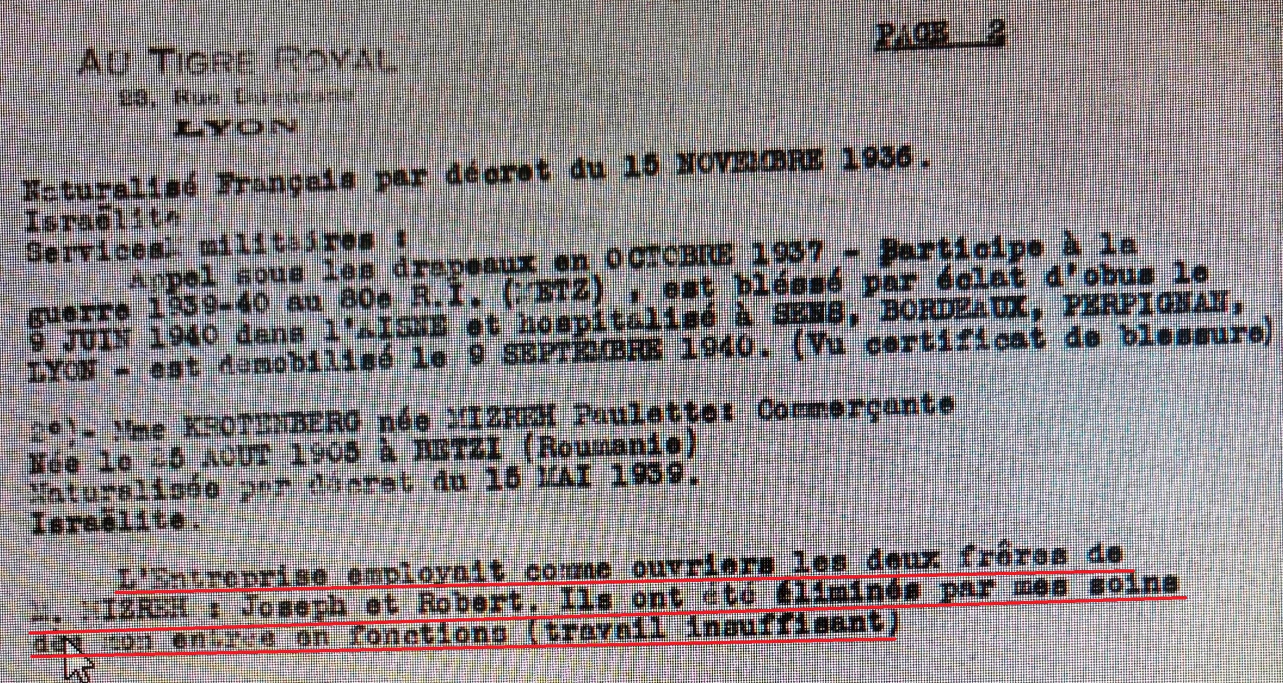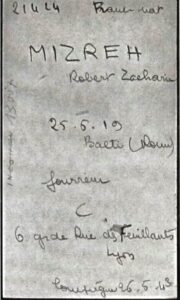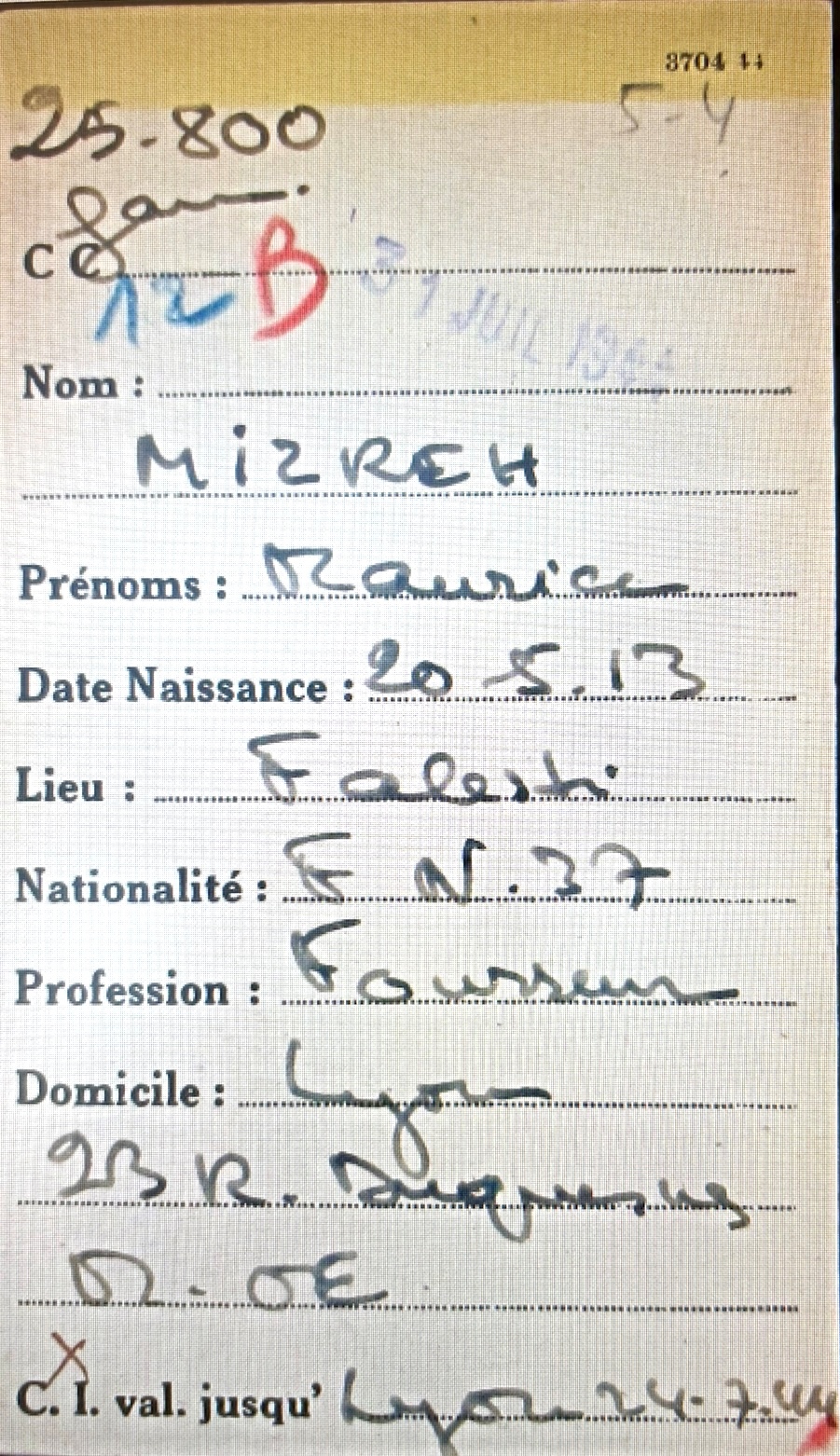 C’est à cette adresse, où habitait désormais la famille Mizreh, qu’ils vécurent le début de la Seconde Guerre mondiale. Le 29 septembre 1938, Aba, son épouse Peissa, et leurs deux fils mineurs, Robert et Jacques, reçurent la nationalité française.