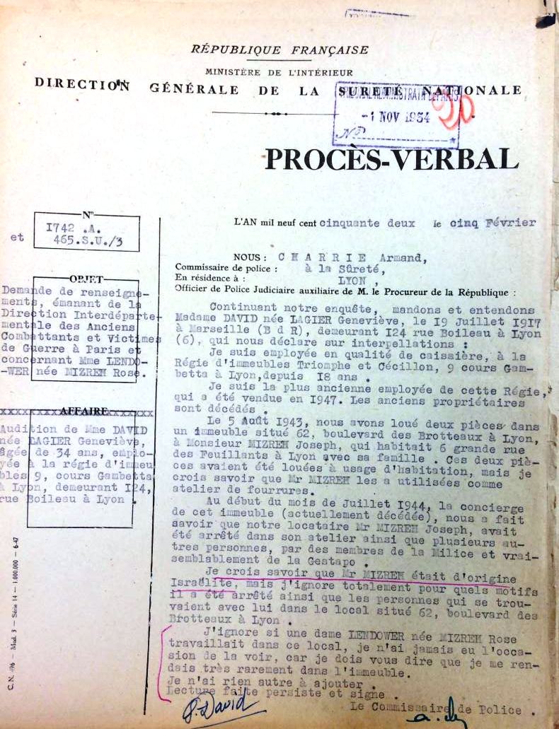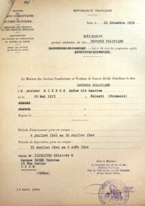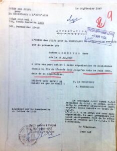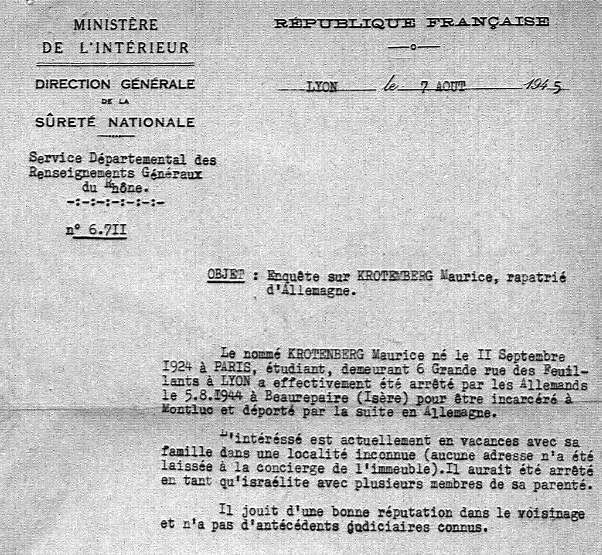 [44] Rapport du commissariat de police à la suite d’une demande de renseignements émanant d la direction départementale des Anciens Combattants et Victimes de Guerre à Paris daté de 1952.