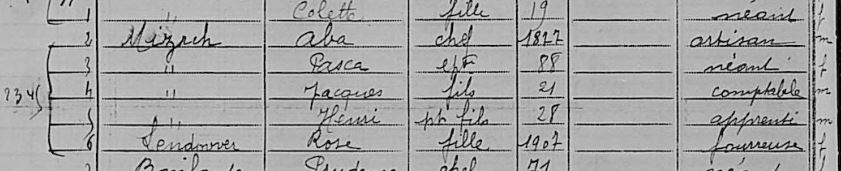 [12] Dans ce recensement, la famille est rebaptisée « Myrels » ! Joseph, Rose et Henri volent de leurs propres ailes et n’y apparaissent plus, Serge est encore nommé Israël et Robert Isaac. Ces précisions sont intéressantes dans la mesure où les recensements étant déclaratifs, on peut penser que c’est ainsi qu’ils étaient appelés dans la famille.