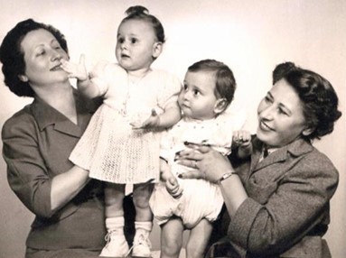 Muriel et Olivier Lendower, entourés de leurs deux grands-mères : Louise Grinbaum (mère de Janine) à gauche, et Rose Lendower à droite – 1951 – Photo familiale