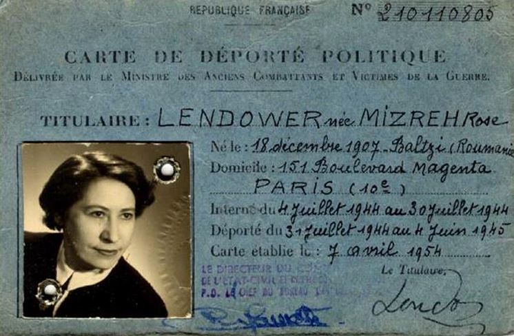Rose reçut sa carte de déportée politique le 07 avril 1954.