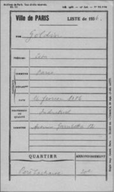 ©Archives de la Ville de Paris, Recensement des électeurs, fichier 1921-1939, année d’inscription 1936.