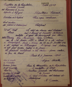 En fait, au 11 rue Cambacérès dans le 8e arrondissement à Paris se tenait l’annexe de la Gestapo de Paris (la Police politique du IIIe Reich[18]). Léon a dû y être conduit au matin du 22 juillet 1944. Puis, d’après un certificat de la Direction de la captivité établi le 7 janvier 1946 d’après ses « fichiers », il aurait été embarqué pour Compiègne, au camp de Royallieu (ou Frontstalag 122) dans l’Oise, seul camp de transit nazi ouvert de juin 1941 à août 1944 dépendant exclusivement de l’administration allemande (SD : Service de sécurité), mais nous n’en avons pas trouvé la trace.