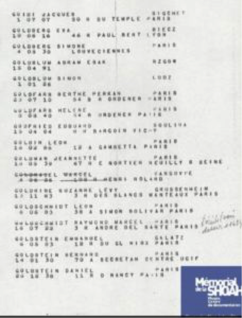 Liste du convoi 77. Goldin Léon ©Mémorial de la Shoah.