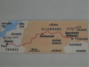Carte illustrant l’extrait de l’interview de Ginette Kolinka, « Il ne faut pas retourner à Birkenau au printemps », Célia Héron, Le Temps, 1er juin 2019, manuel Foucher 1re Bac Pro p.45 étude 2, Guerres européennes, guerres mondiales, guerres totales (1914-1945).