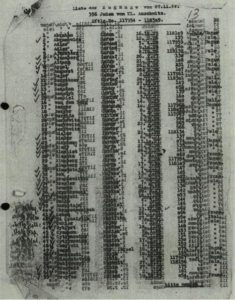 Nous retrouvons la piste de Serge au camp de concentration de Sachsenhausen, près d’Orianenbourg, à 30 kilomètres au nord de Berlin, entre le 17 et 23 décembre 1944. Serge porte le matricule 118103 (numéro 30 sur la feuille). Il y est arrivé le 27 novembre 1944, avec 15 camarades déportés, qui ont moins de 18 ans.