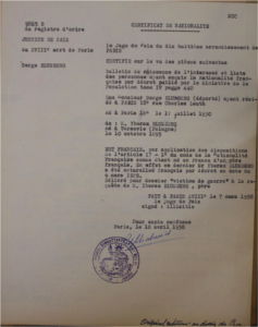Armand est naturalisé français en même temps que son épouse et leurs enfants, le 6 mars 1929 à Paris. Serge, né après leur naturalisation, est déclaré français, né en France d’un père français. Ce qui se traduira, dans le langage du camp de Drancy par l’expression « français d’origine » (F.O. sur sa fiche d’internement).