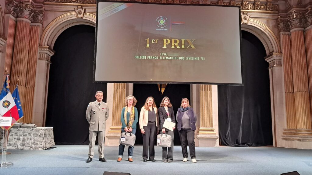 Mme Elsa De Cara, élève au collège franco-allemand de Buc (Yvelines) a été récompensée par le premier prix de la Fédération Maginot*. Cette dernière décerne, chaque année, des Prix de la Mémoire et du Civisme à des élèves d’école élémentaire, de collège et de lycée.