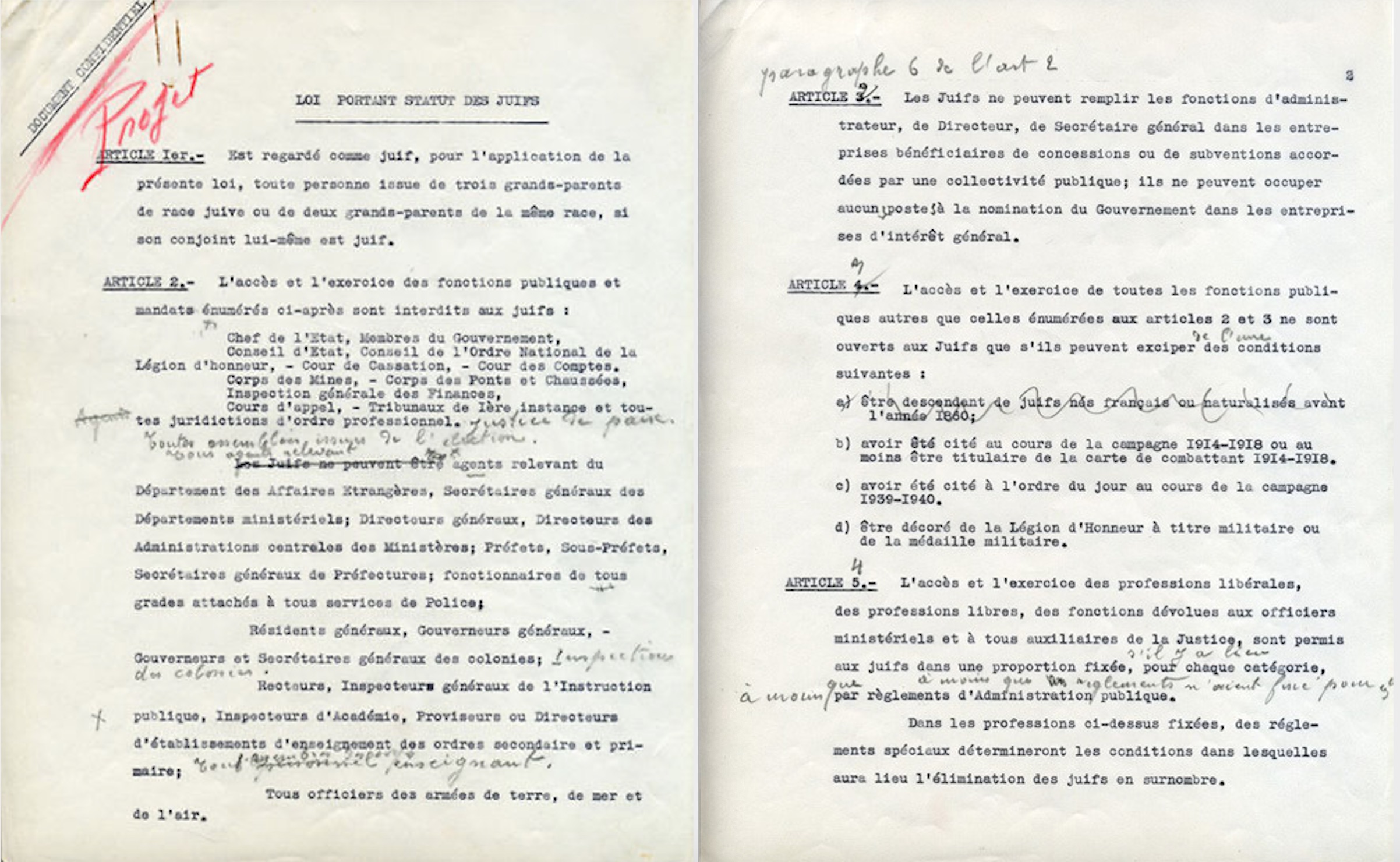 La loi du 3 octobre 1940 dite « Statut des Juifs » ordonne d’exclure tous les juifs de la fonction publique. À chaque administration d’appliquer cette décision discriminatoire. Le mois suivant, plusieurs hauts fonctionnaires se réunissent à Vichy pour parler de la mise en œuvre de cette législation antisémite.